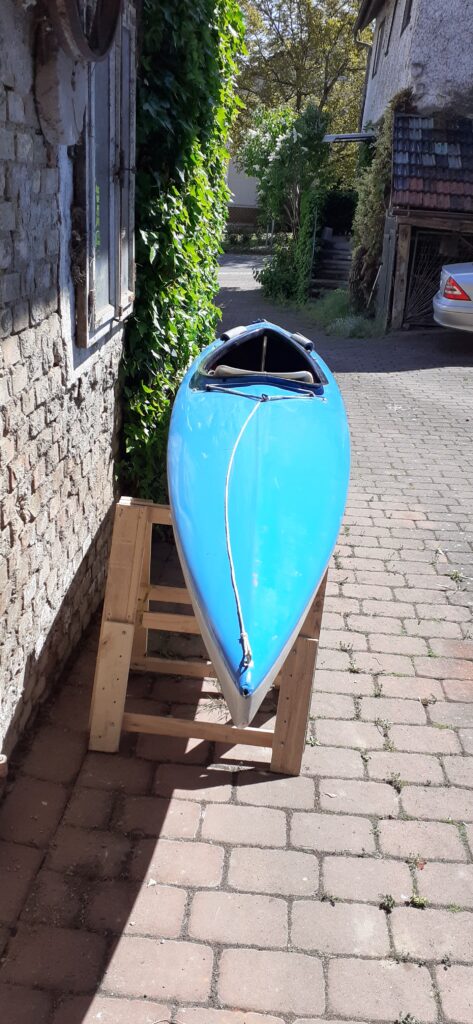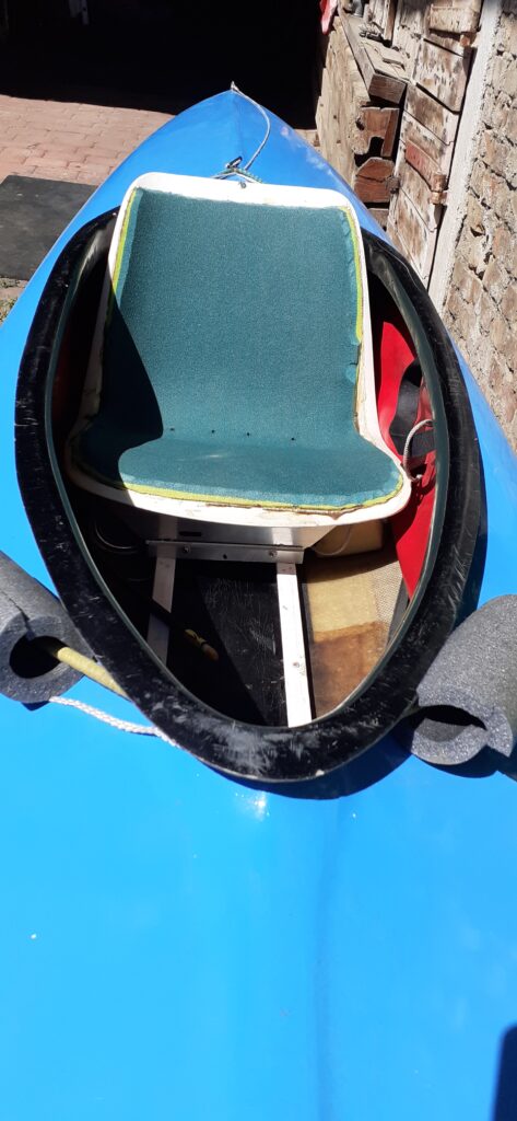 Älteres, sehr stabiles Kajak mit sehr großem Einstieg und Rücken - schonendem Spezialsitz