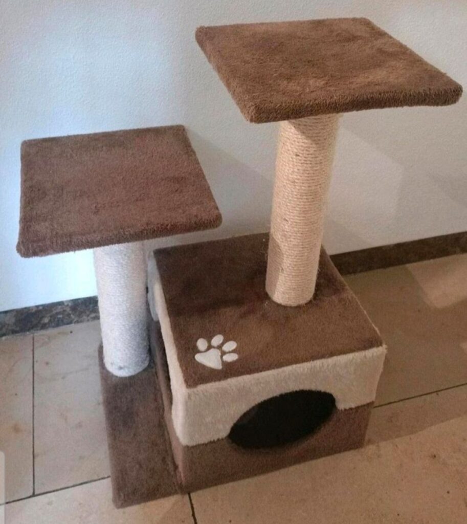 kleiner Kratzbaum sucht ein neues Zuhause. 60 x 70 cm, 2 Stämme, 2 Liegeplätze, 1 Höhle, Zustand sehr gut, nur zum Liegen genutzt