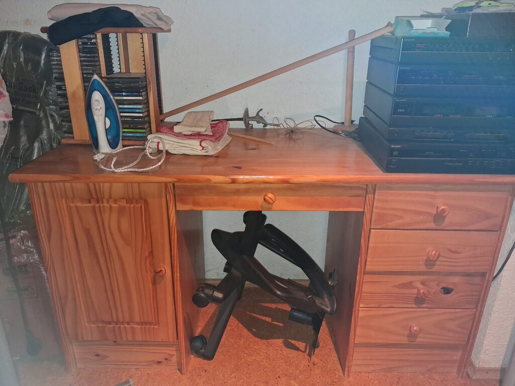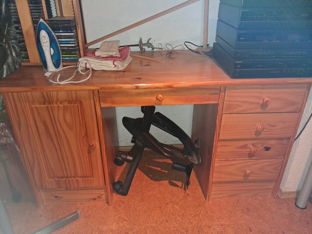 gut erhaltenen, massiv, helles Kiefernholz mit Schubladen u. einer Türe, 140 x 74 x 60 cm