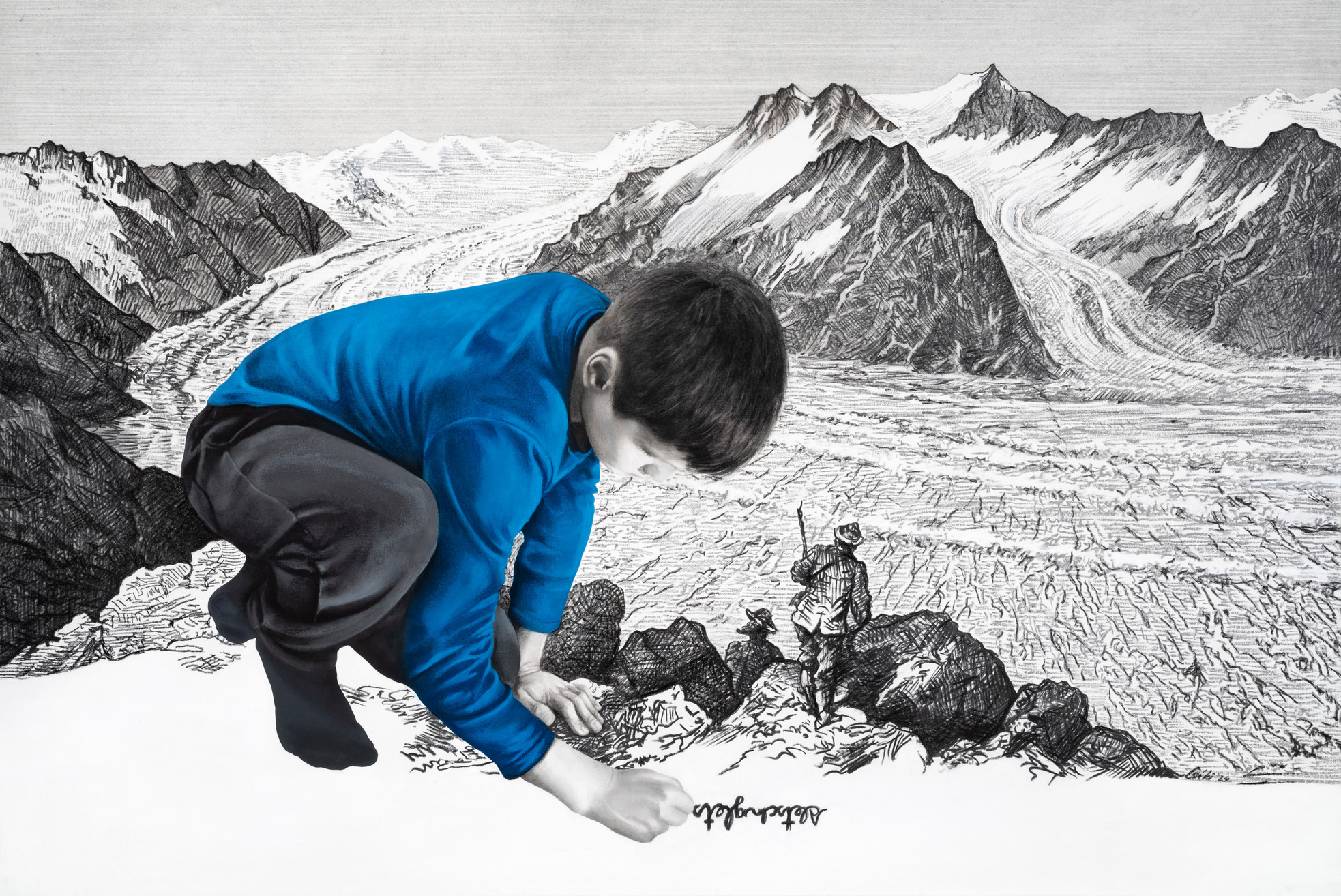 Die Ausstellung thematisiert nicht allein die Schönheit der Bergwelt und die Erhabenheit, die von schneebedeckten Gipfeln und eisigen Gletschern ausgehen, sondern veranschaulicht auch die Bedrohung, der dieses Naturparadies ausgesetzt ist. Sowohl die Zeichnungen von István Csáki als auch die Metallskulpturen von Angelika Summa visualisieren Naturphänomene. So sehr sie sich darin auch unterscheiden, ihr Kontrast schärft die Wahrnehmung für die Auswirkungen klimatischer Veränderungen.